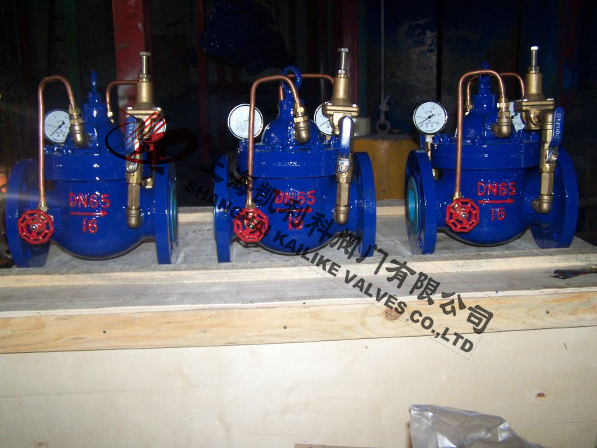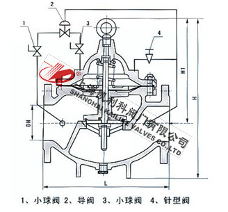 900X緊急關閉閥當出口壓力低于導閥設定的壓力時,導閥此時處于開通狀態(tài),主閥上腔壓力與主閥出口壓力相等,進口與吃口存在壓差,水流經(jīng)閥口出口流出,當消防泵氣泵時,或變平泵壓力升高時,超過導閥設定壓力,由主閥進口向?qū)чy管控制室壓力升高,作用在彈簧壓力增大,向下壓緊,帶動閥芯下移,使導閥關閉,此時主閥進口壓力通過節(jié)流閥補充到主閥閥蓋上腔,因閥瓣受到向下壓力大于向上推力,主閥關閉。值得注意的是,進口壓力小于設定壓力是,主閥處于開啟狀態(tài),進口壓力大于設定壓力,閥瓣關閉。