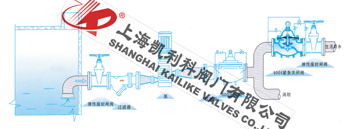 900X緊急關閉閥用于生活供水和消防供水并聯(lián)供水系統(tǒng)中,正常情況供生活用水,當火災發(fā)生時消防用水時,閥門自動關閉生活用水,確保足夠的消防用水。當消防停止用水時壓力減少,閥門自動恢復生活用水,該閥使系統(tǒng)無須另設專門的消防單獨供水管網(wǎng),大大地節(jié)省了工程建設成本和日常的用水量。該閥控制靈敏、安全可靠、調(diào)試簡單、使用壽命長。